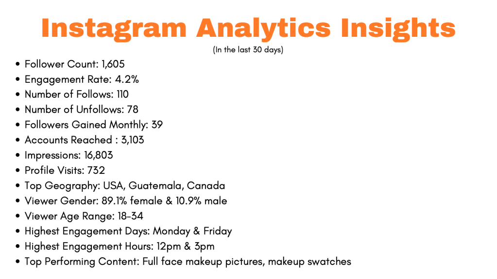 This week I dove deep into my project. I mostly focused on reading my analytics and researching and creating my buyer persona. These are two key components for my social media strategy so I made sure to nail these down to ensure a high success rate by the end of the month.